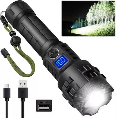 La súper linterna tiene un largo alcance, enfoque ajustable y 5 modos de iluminación, lo que le permite estar preparado para cualquier situación (pesca, deportes, campamentos, paseos en automóvil, etc.).